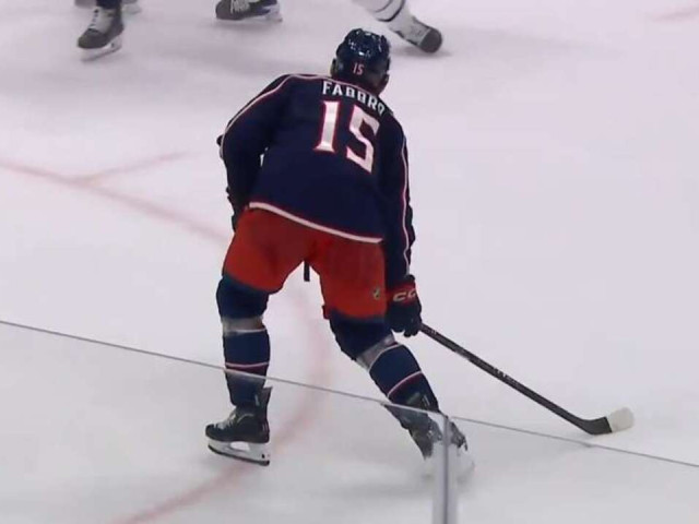Watch as Columbus forward Dante Fabbro snipes the Blue Jackets’ fifth goal of the game past Cayden Primeau after Toronto Maple Leafs forward Steven Lorentz crashed hard into the boards at the far end of the ice.